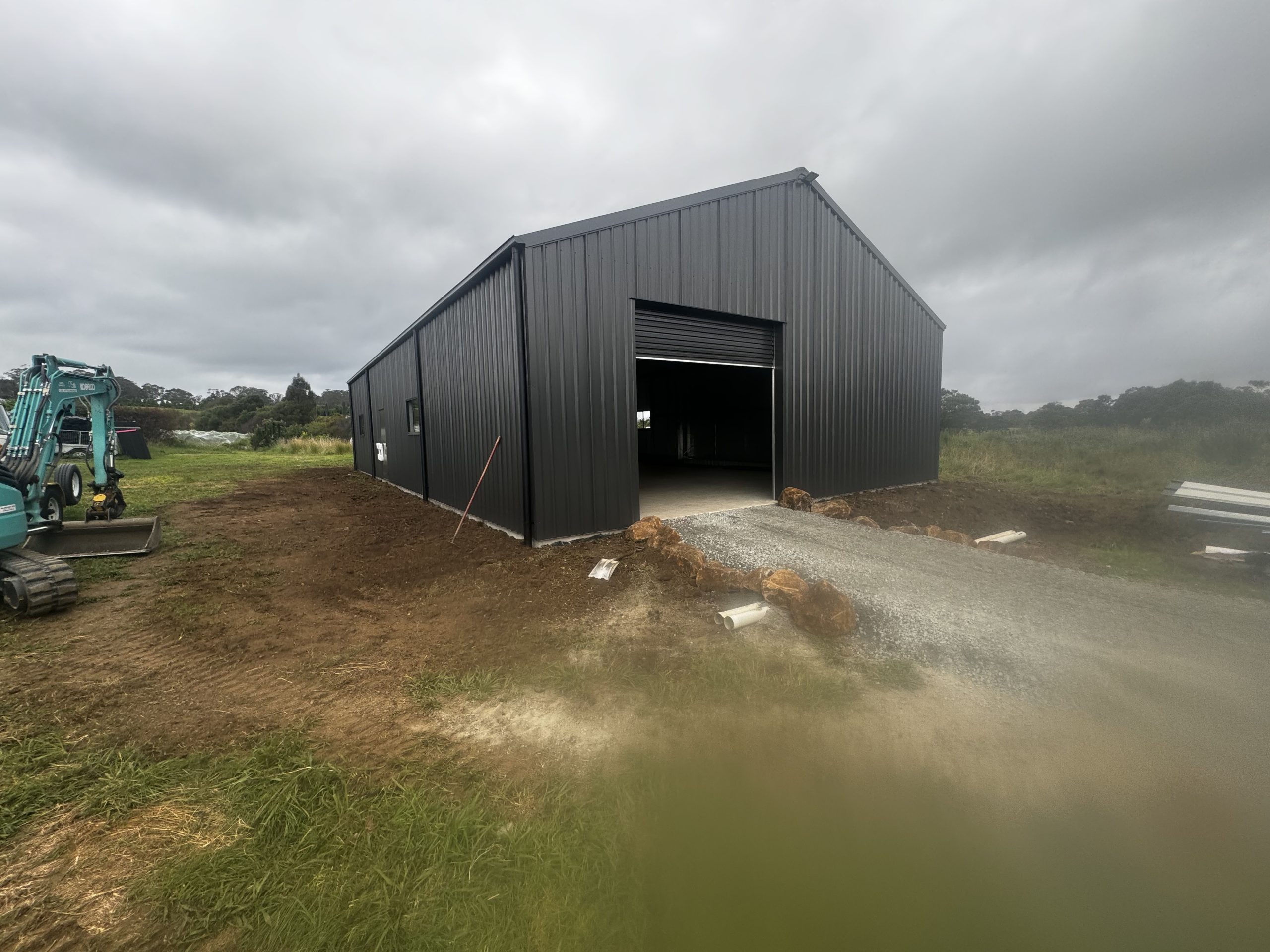 Ace Scape Construction managed the entire build from start to finish. The project included full excavation and ground works, concrete slab preparation and pouring, plumbing works, and the complete shed construction. Once the structure was in place, the surrounding area was carefully levelled around the slab to ensure a clean, functional finish that suits the site.